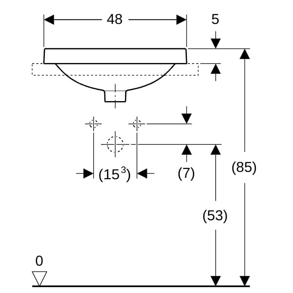 Geberit Einbau-Waschtisch VariForm d= 48cm, mit Hahnlochbank, ohne Überlauf, rund, Unterseite glasiert / weiß