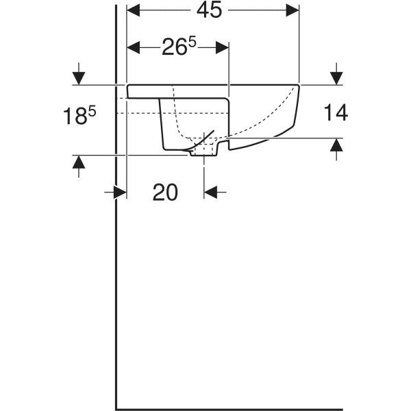 Geberit Halb-Einbau-Waschtisch VariForm 55x45cm, mit Hahnloch, mit Überlauf, quadratisch, weiß W51055