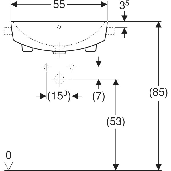 Geberit Halb-Einbau-Waschtisch VariForm 55 x 45 cm, mit Hahnloch, mit Überlauf, quadratisch, weiß