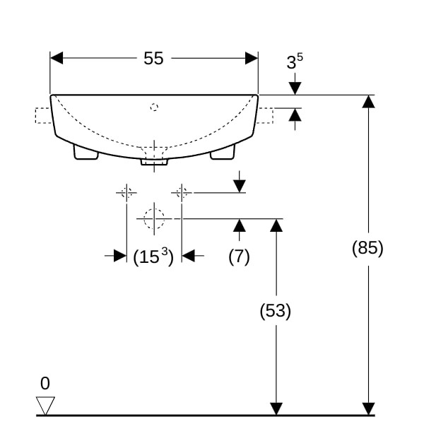 Geberit Halb-Einbau-Waschtisch VariForm 55 x 45 cm, mit Hahnloch, mit Überlauf, quadratisch, weiß W36547