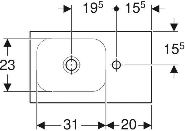 Geberit Handwaschbecken iCon Light 53x31cm, Hahnloch rechts, ohne Überlauf, mit Ablagefläche, weiß W36218