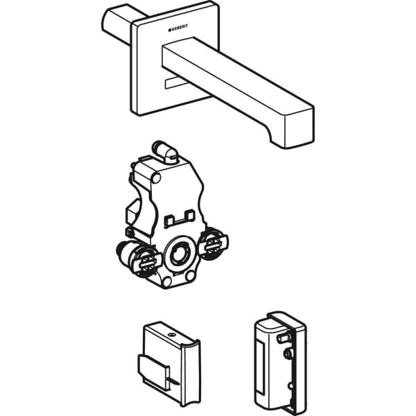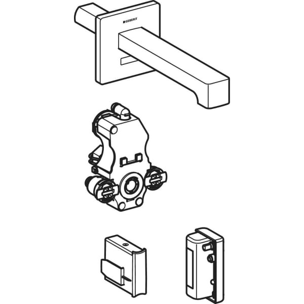 Geberit Infrarot-Waschtisch-Armatur Brenta 22 cm, ohne Mischer, Wandmontage, Generatorbetrieb, UP-Funktionsbox W337074