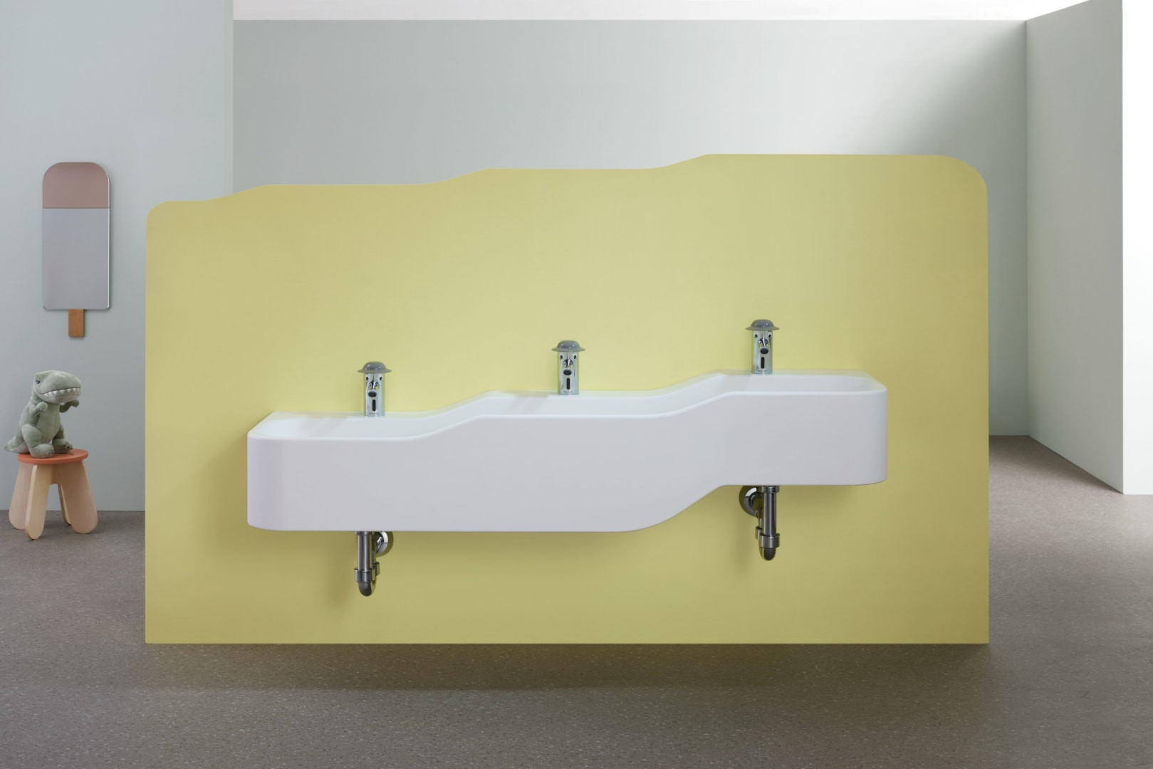 zur Entnahme von Leitungswasser, für Kinder, für Kinderbetreuungseinrichtungen, zum Einbau in Waschtische oder Waschtischplatten, zum Einbau in Spiel- und Waschlandschaften, zum Anschließen von Kalt- und Warmwasser, kinderfreundliches Design, Armaturengruppe I nach DIN 4109, automatische Spülauslösung, Infrarotbenutzererkennung, IR-Sensor selbsteinstellend, Volumenstrombegrenzung durch Strahlregler, Wasserersparnis durch reaktionsschnelle Zweistrahl-Abtasttechnik, Aktivierungsdistanz einstellbar, Intervallspülung, Spülauslösung zur Beckenreinigung manuell deaktivierbar, mit integriertem Rückflussverhinderer, Gehäuse pulverbeschichtet, Hut aus Polycarbonat, Nennspannung 230 V AC, Netzfrequenz 50 Hz, Betriebsspannung 6 V DC, Batterietyp CR-P2 (6V), Batteriespannung 6 V DC, Betriebsdruck 100-850 kPa, max. Prüfdruck Wasser 1600 kPa, max. Prüfdruck Luft/Intergas 300 kPa, max. Wassertemperatur 65 °C, max. Wassertemperatur kurzzeitig 90 °C, Durchfluss bei 3000 kPa 5,7 l/min, Intervallspülung 24 h, Intervallspülzeit 10 s, Werkstoff Messing, mit Netzteil: bestehend aus Netzteil, Korbfilter, Schlüssel für Strahlregler, Befestigungsmaterial, mit Batterie: bestehend aus Batteriebox, Lithium-Batterie Typ CR-P2 6 V, Korbfilter, Schlüssel für Strahlregler, Befestigungsmaterial