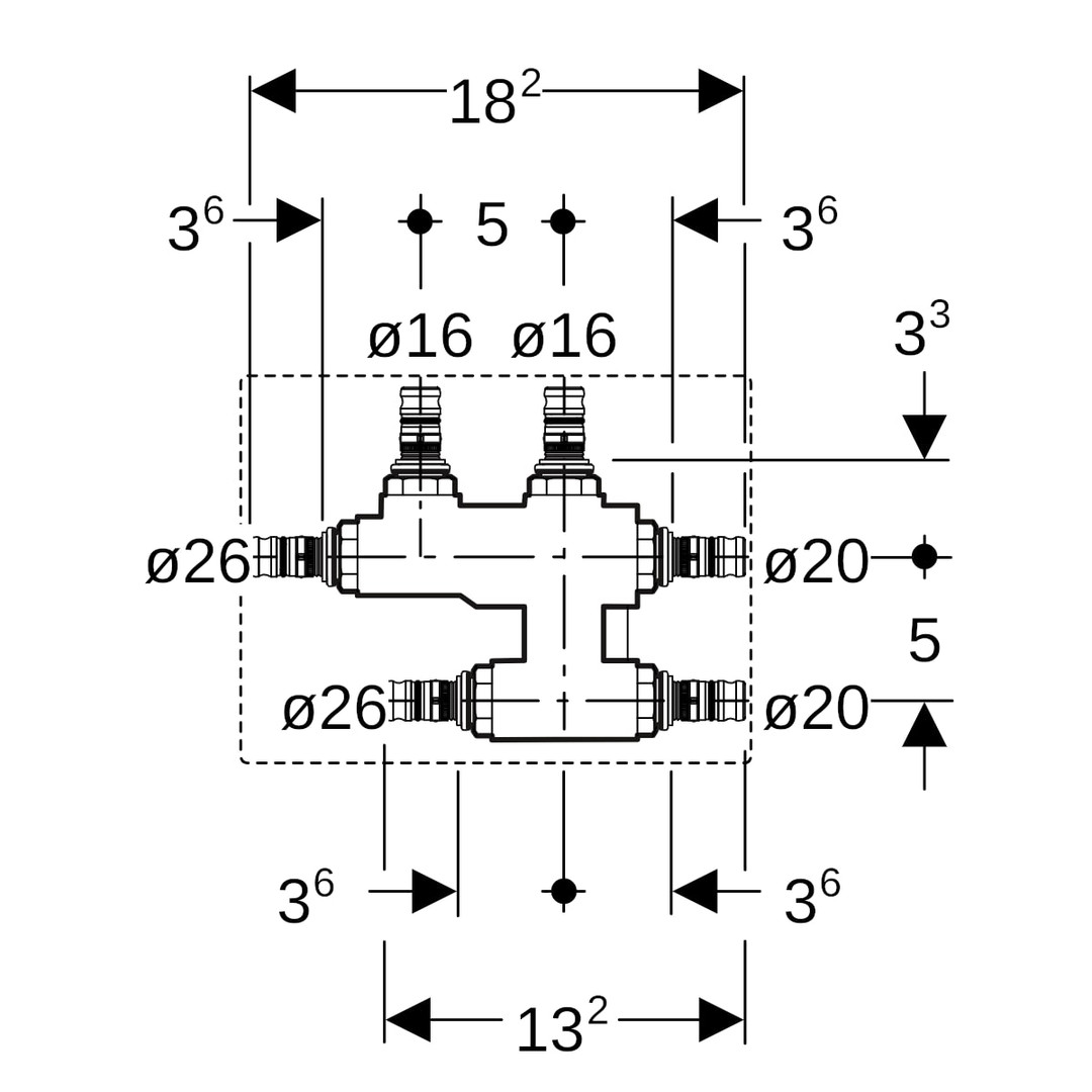 Geberit Kreuzungs-T-Stück Mepla Ø 26 x 16 x 20 mm, mit Dämmbox