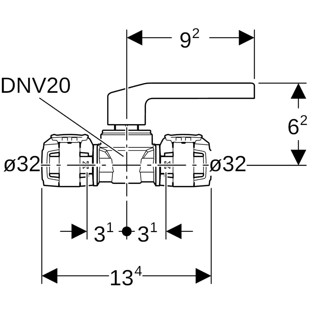 Geberit Kugelhahn FlowFit Ø 32 mm, 12,8 cm, mit Betätigungshebel W535280