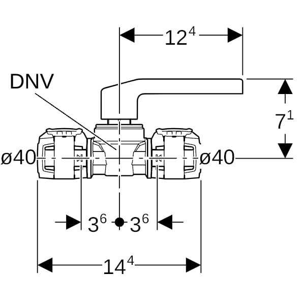 Geberit Kugelhahn FlowFit Ø 40 mm, 13,8 cm, mit Betätigungshebel W535281