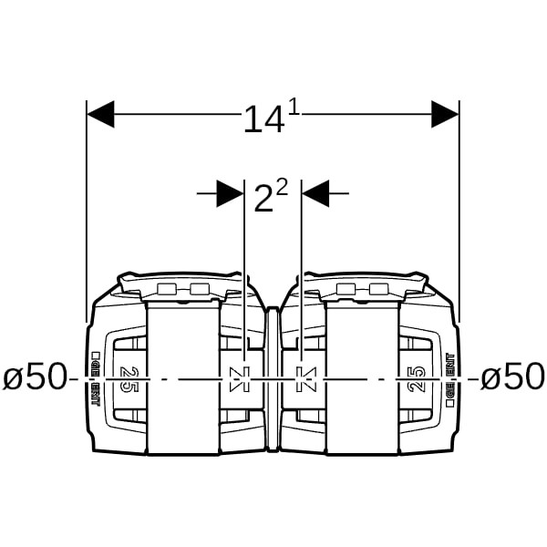 | Rohraußendurchmesser Anschluss 1 | 50 mm |