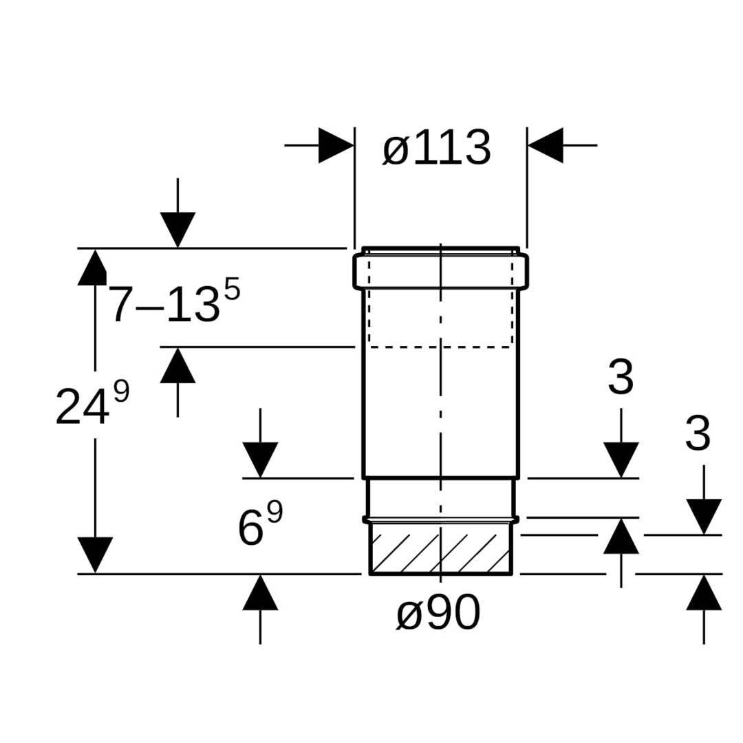 Geberit Langmuffe PE DN 30, mit Doppelbund und Schutzdeckel, PE-HD W894734