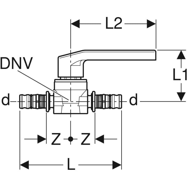 Geberit Mepla Kugelhahn mit Betätigungshebel, Rg / SiBr: CuZn21Si3P, d=20mm, PN=10bar