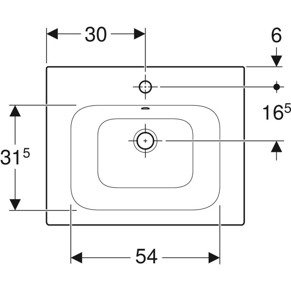 Geberit Möbel-Waschtisch Renova Plan 55 x 48 cm, weiß, mit Hahnloch, mit Überlauf W35659