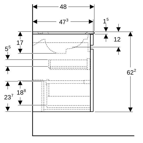 Geberit Möbel-Waschtisch-Set Renova Plan 55x62,2x48cm, Korpus/Front lava matt/Waschtisch weiß W50327