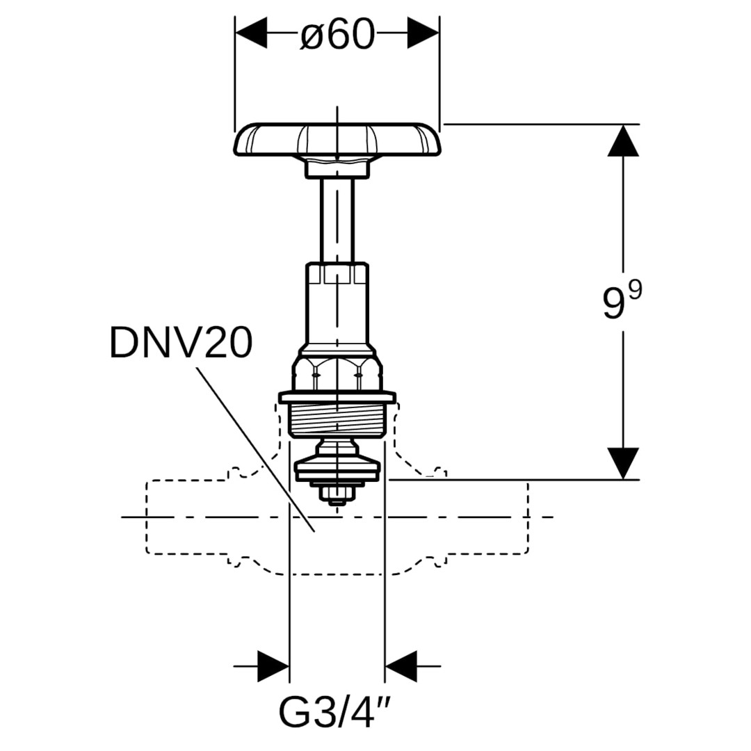 Geberit Oberteil mit Handrad: DNV=20, G=3/4"
