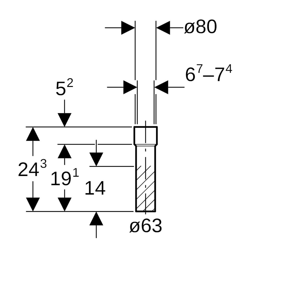 Geberit PE Übergangsstutzen mit Schrumpfmuffe: d=63mm, di=80mm