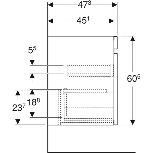 Geberit Renova Plan Unterschrank für Möbelwaschtisch, mit einer Schublade und einer Innenschublade: 53.8x60.5x47.3cm, Nussbaum hickory hell