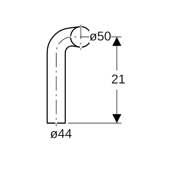Geberit Spülbogen 2 cm nach links, gekröpft, 90Grad, d= 50mm, 28x21cm, weiß