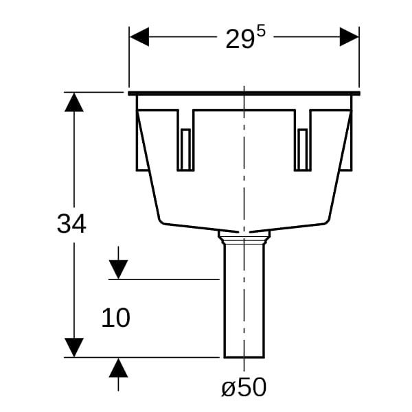 Geberit Trichter Ø 50 mm, rechteckig, mit Ventilsieb, Kunststoff, kieselgrau