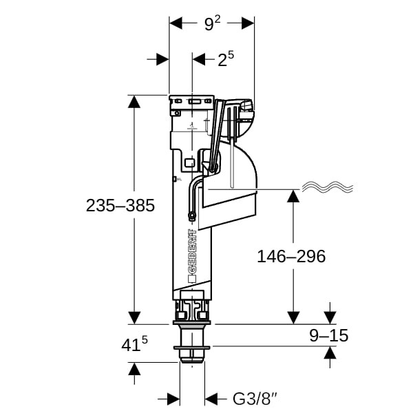 Geberit Typ 360 Füllventil Wasseranschluss unten, 3/8", Nippel aus Messing
