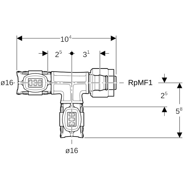 Geberit Übergangs-T-Stück FlowFit mit MasterFix, Ø 16 mm x 16 mm x RpMF 1/2, Abzweig 251274