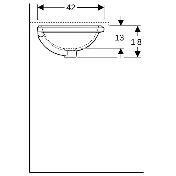 Geberit Unterbau-Waschtisch VariForm d= 39cm, ohne Hahnloch, ohne Überlauf, rund, Unterseite glasiert / weiß