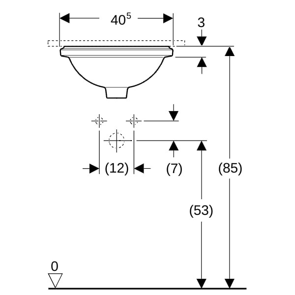 Geberit Unterbau-Waschtisch VariForm d= 39cm, ohne Hahnloch, ohne Überlauf, rund, weiß