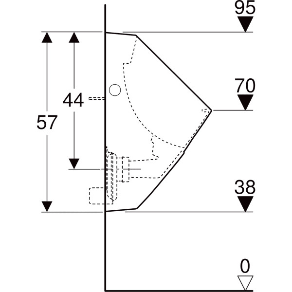 34 x 57 x 34 cm, aus Sanitärkeramik, zum Betrieb mit automatischer, wassersparender Spülung, für Aufputz-Urinalsteuerungen, wandhängend, mit Spülrand, Geruchsverschluss verdeckt, verdeckte Befestigung, erfüllt Anforderungen nach EN 13407, mit Befestigungsmaterial für Urinal