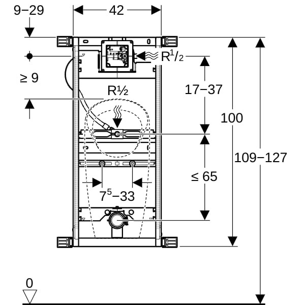 Geberit Urinal-Element Kombifix BH 109-127 cm, für Sprühkopf, universell, verzinkt