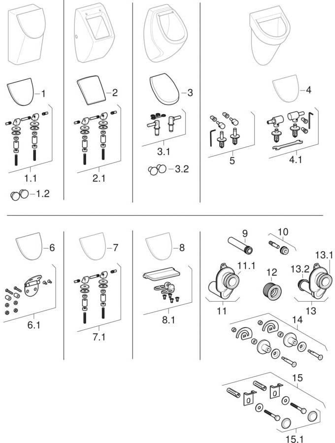 30 x 52,5 x 26,5 cm, aus Sanitärkeramik, zum Betrieb mit automatischer, wassersparender Spülung, zum Betrieb mit manueller oder automatischer Spülauslösung, für Unterputz-Urinalsteuerungen, wandhängend, mit Spülrand, Geruchsverschluss verdeckt, verdeckte Befestigung, erfüllt Anforderungen nach EN 13407, zusätzlich zu bestellen Urinaldeckel Pareo, Befestigungsset für Urinal, Kerafix