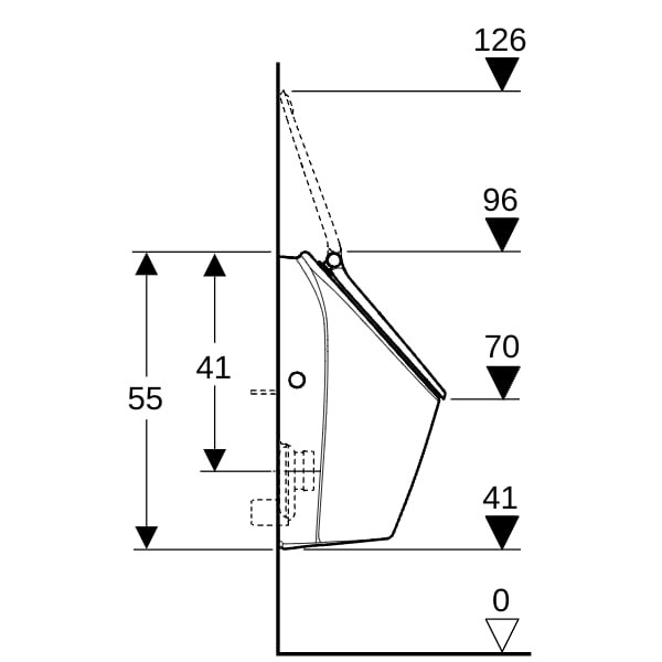 zum Betrieb mit automatischer, wassersparender Spülung, zum Betrieb mit manueller oder automatischer Spülauslösung, für UP-Urinalsteuerungen, für UP-Urinalsteuerungen verdeckt, für AP-Urinalsteuerungen verdeckt, Breite 33 cm