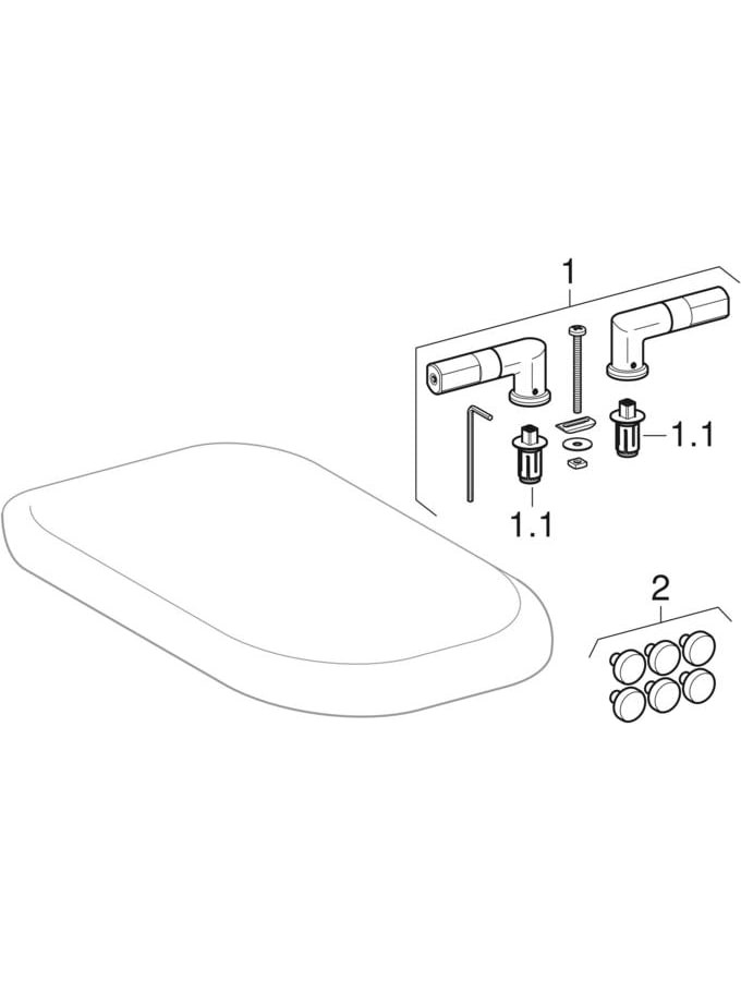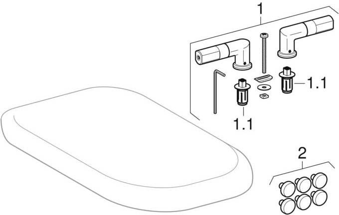 | Scharnierfussbefestigung am Sitz mit | in den Deckel gesteckte Stifte |