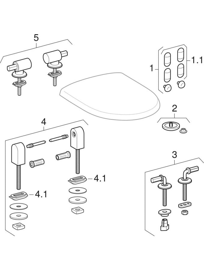 | Scharnierfussbefestigung am Sitz mit | in den Deckel gesteckte Stifte |
