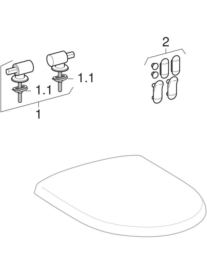 | Scharnierfussbefestigung am Sitz mit | in den Deckel gesteckte Stifte |