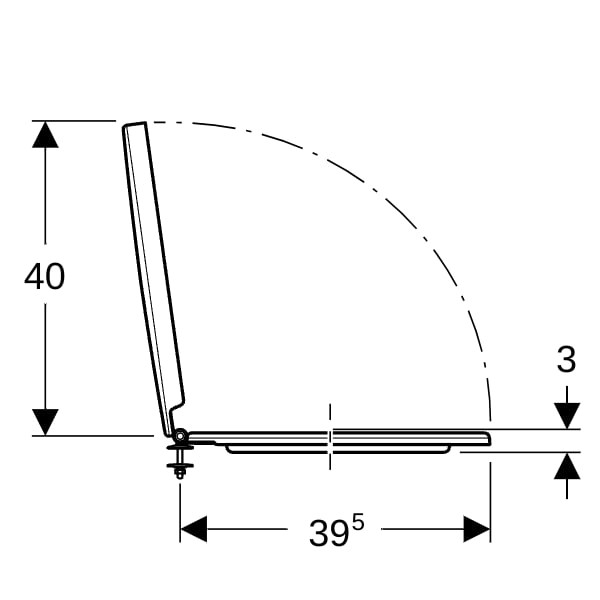 | Scharnierfussbefestigung am Sitz mit | in den Deckel gesteckte Stifte |