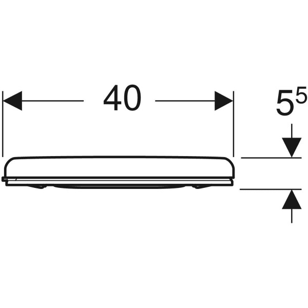 eckig, Scharnierwelle aus Edelstahl durchgehend, mit WC-Deckel überlappend, Schräge, in die keramische Fase der WC-Keramik hineinragende Puffer gegen seitliches Verrutschen des WC-Sitzes, mit Ausgleichspuffer mit Griff für WC-Deckel, aus Duroplast