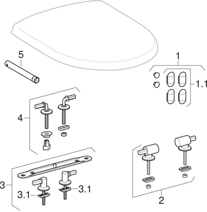 | Scharnierfussbefestigung am Sitz mit | in den Deckel gesteckte Stifte |