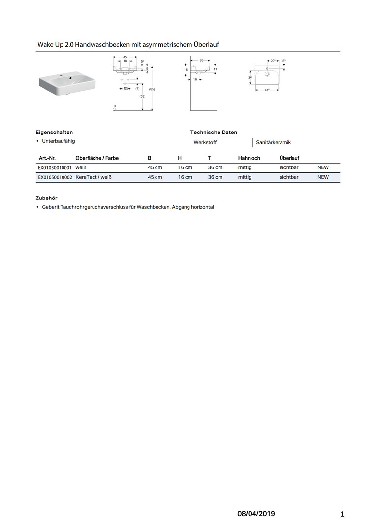 | Produktklasse | Handwaschbecken |