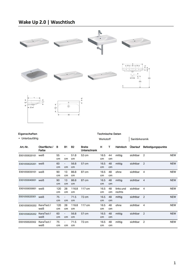 | Anzahl der Hahnlöcher je Waschplatz | 1 |