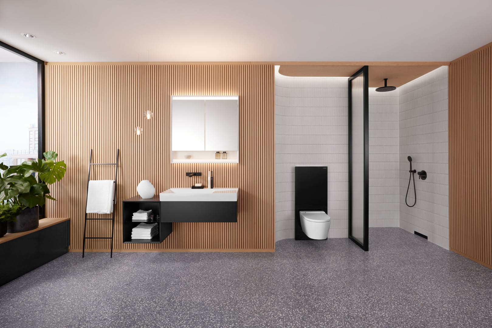 spülrandlose WC-Keramik mit TurboFlush-Spültechnik, Analdusche mit WhirlSpray-Duschtechnologie, separate Ladydüse in geschützter Ruheposition, automatische Vor- und Nachreinigung der Duschdüse mit Frischwasser, Benutzererkennung, Duscharm in 5 Stufen positionierbar, Duschstrahlstärke in 5 Stufen einstellbar, Entkalkungsprogramm, Oszillierdusche (automatische Vor- und Rückwärtsbewegung des Duscharms) einstellbar, 4 Benutzerprofile programmierbar, Zulassung nach (DIN) EN 1717/(DIN) EN 13077, technische Eigenschaften: Schutzart: IPX4, Schutzklasse: I, Nennspannung (V): 230 V AC, Netzfrequenz (Hz): 50 Hz, Leistungsaufnahme (W): 1850 W, Leistungsaufnahme Stand-by (W): max. 0,5 W, Fließdruck (bar): 0,5-10 bar, Fließdruck (kPa): 50-1000 kPa, Betriebstemperatur: 5-40 °C, Wassertemperatur Einstellbereich: 34-40 °C, Berechnungsdurchfluss (l/s): 0,02 l/s, Mindestfließdruck für Berechnungsdurchfluss (bar): 0,5 bar, Durchfluss Analdusche (l/min): 0,6-1,1 l/min, Durchfluss Ladydusche (l/min): 0,6-1,1 l/min, Mindestfließdruck für Berechnungsdurchfluss (kPa): 50 kPa, Duschdauer (s): 50 s, maximale Belastung WC-Sitz (kg): 150 kg, zusätzlicher Lieferumfang, Wasseranschlussset für Sigma und Omega Unterputz-Spülkästen 12 cm, Einbauhöhe 112 cm, Kupplungsbuchse für Netzanschluss, Schallschutzset, Spritzschutz, Entkalkungsmittel 125 ml, Reinigungsset, Anschlussset für WC, D 90 mm, Fernbedienung mit Wandhalterung und Batterie CR2032, Befestigungsmaterial