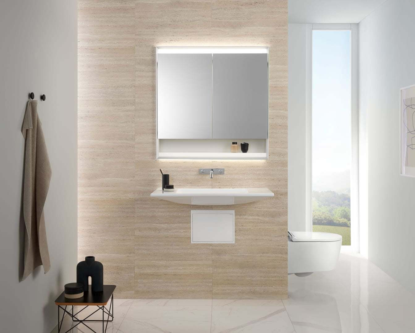 Geberit Wand-Tiefspül-WC One mit WC-Sitz, weiß/hochglanzverchromt 260739