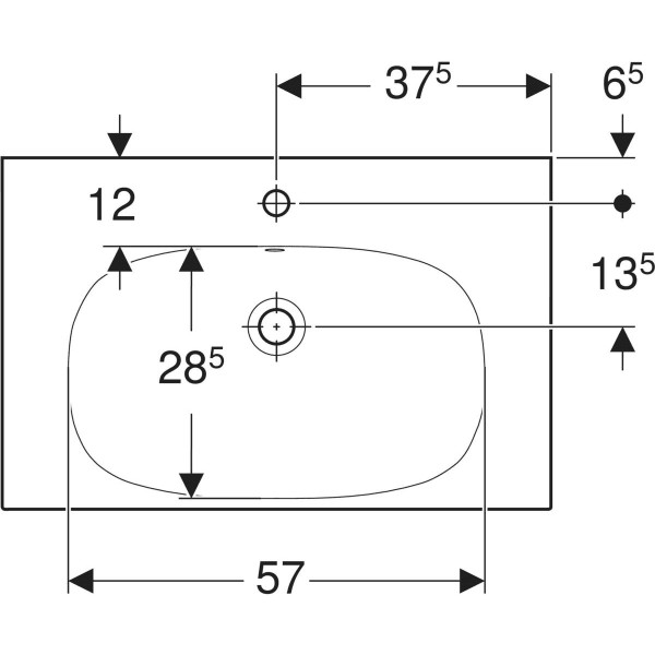 Geberit Waschtisch Acanto 75 x 42,2 cm, mit Ablagefläche, mit Hahnloch, mit Überlauf, weiß W36513