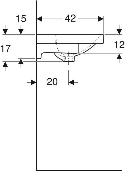 verkürzte Ausladung, unterbaufähig, aus Sanitärkeramik, kombinierbar mit Acanto Unterschrank für Waschtisch mit Schublade und einer Innenschublade, verkürzte Ausladung, mit Geruchsverschluss