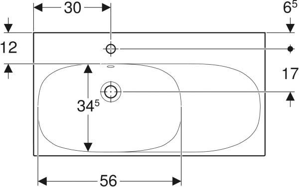 Geberit Waschtisch Acanto 90 x 48,2 cm, Ablagefläche rechts, mit Hahnloch, mit Überlauf, weiß W36499