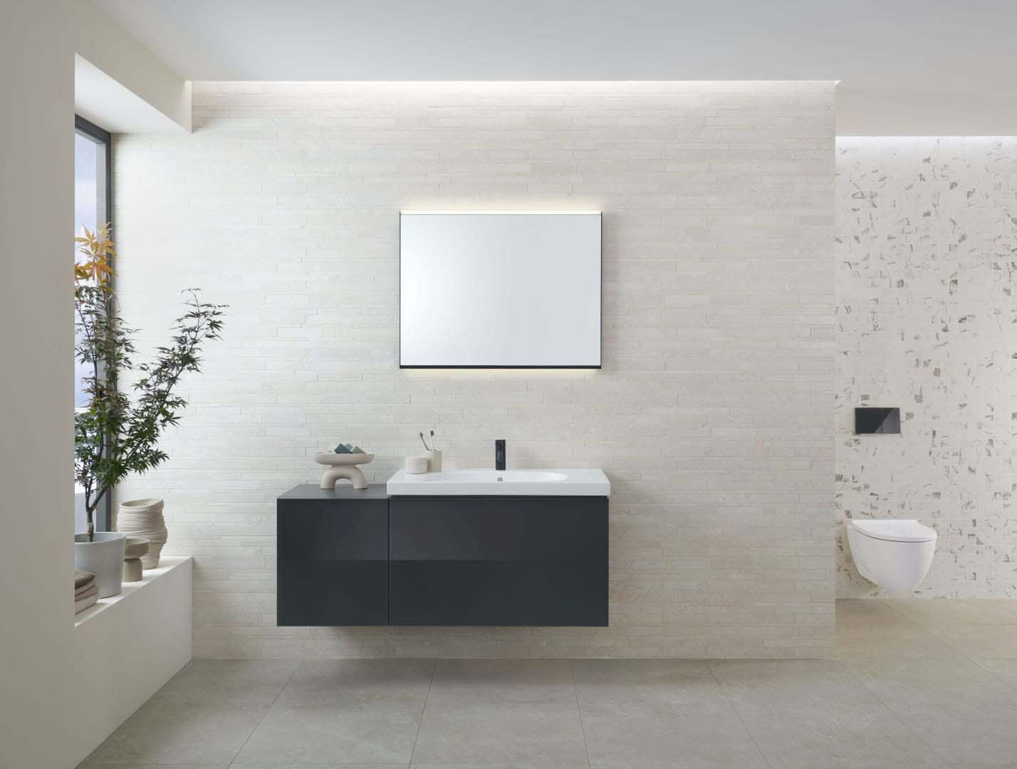 unterbaufähig, aus Sanitärkeramik, kombinierbar mit Acanto Unterschrank für Waschtisch mit Schublade und einer Innenschublade und Geruchsverschluss