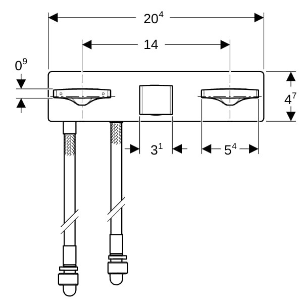 zur Entnahme von Leitungswasser, zum Einbau in Installationselemente für ONE Waschtisch und ONE Wandarmatur, zur Verwendung mit ONE Waschtischen mit verkürzter Ausladung, zum Anschließen von Kalt- und Warmwasser, für Beplankungsdicken 10–60 mm, Armaturengruppe I nach DIN 4109, Betätigungsgriff links für Temperatureinstellung, Betätigungsgriff rechts für Volumenstromeinstellung, Volumenstrombegrenzung durch Strahlregler, mit integriertem Rückflussverhinderer, mit Anschlussschläuchen Länge 57/54 cm, mit Waschtischarmatur, Ventilblock mit Anschlussschläuchen, Befestigungsmaterial