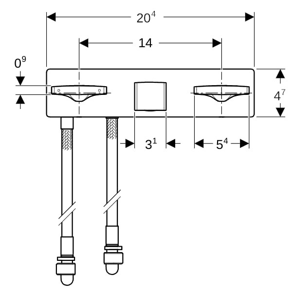Geberit Waschtisch-Armatur ONE Zweigriffmischer, eckig, Wandmontage, für UP-Funktionsbox, hochglanz-verchromt W337095