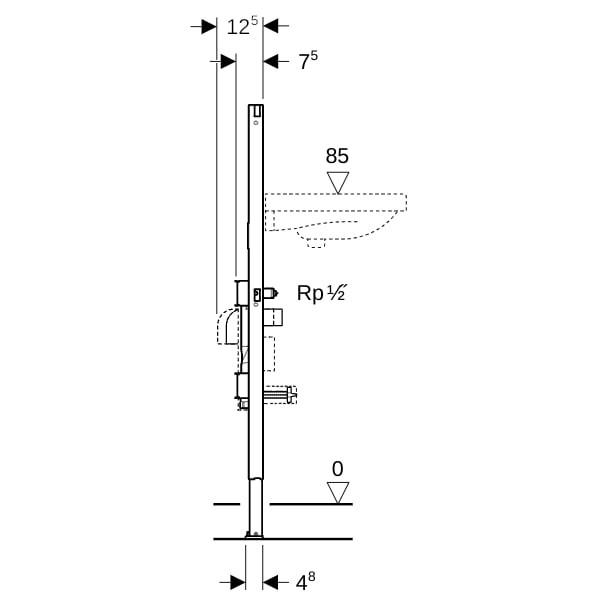 Geberit Waschtisch-Element Duofix BH 112 cm, mit 2 Wasserzählerstrecken, für Standarmatur W352779