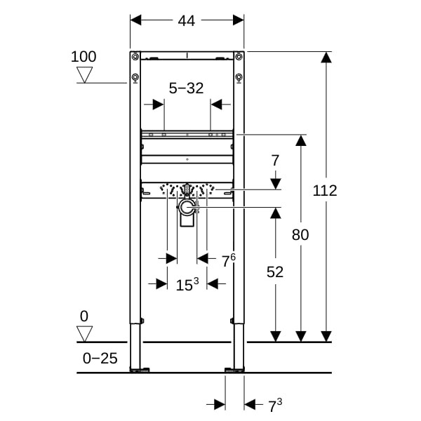 für Metall- und Holzständerwände, für Geberit Duofix Systemwände, zum Einbau in teil- oder raumhohe Vorwände, um Einbau in raumhohe Trennwände, für Fußbodenaufbauten 0–25 cm, Breite 44 cm