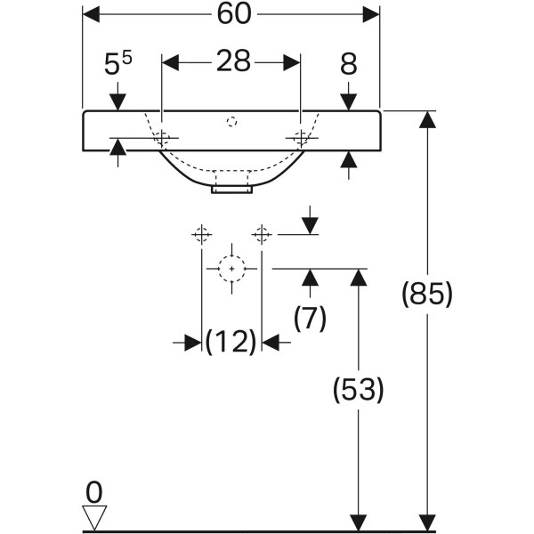 Geberit Waschtisch Preciosa II 60 x 50 cm, mit Hahnloch, mit Überlauf, mit Ablagefläche, weiß W35999