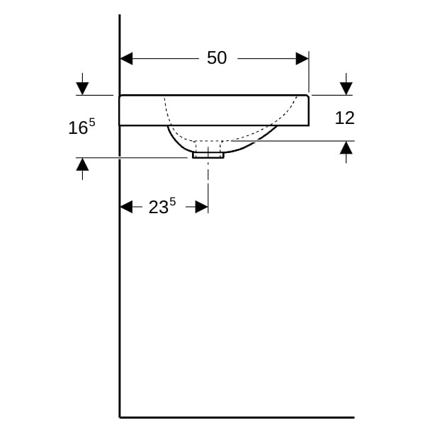 Geberit Waschtisch Preciosa II 60x50cm, mit Hahnloch, mit Überlauf, mit Ablagefläche, weiß W50506