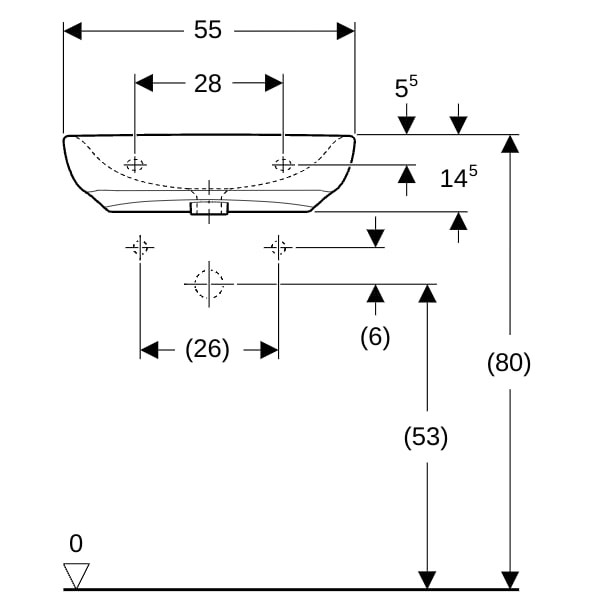 Geberit Waschtisch Renova Comfort 55 x 55 cm, ohne Hahnloch, ohne Überlauf, barrierefrei, weiß W50440