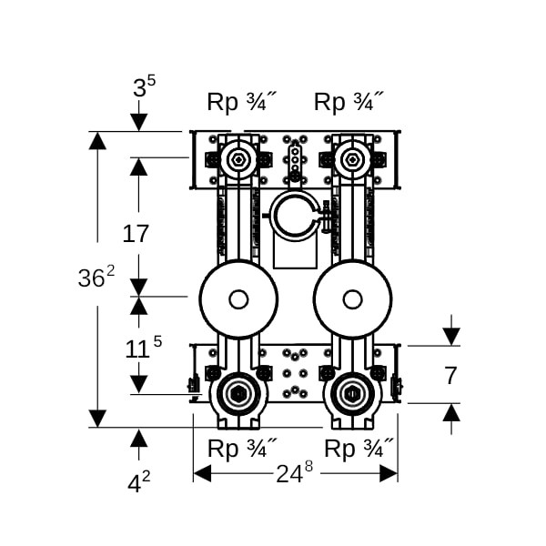 Geberit Waschtisch-Set GIS mit 2 Wasserzählerstrecken, mit UP-Absperrventil, für Standarmatur